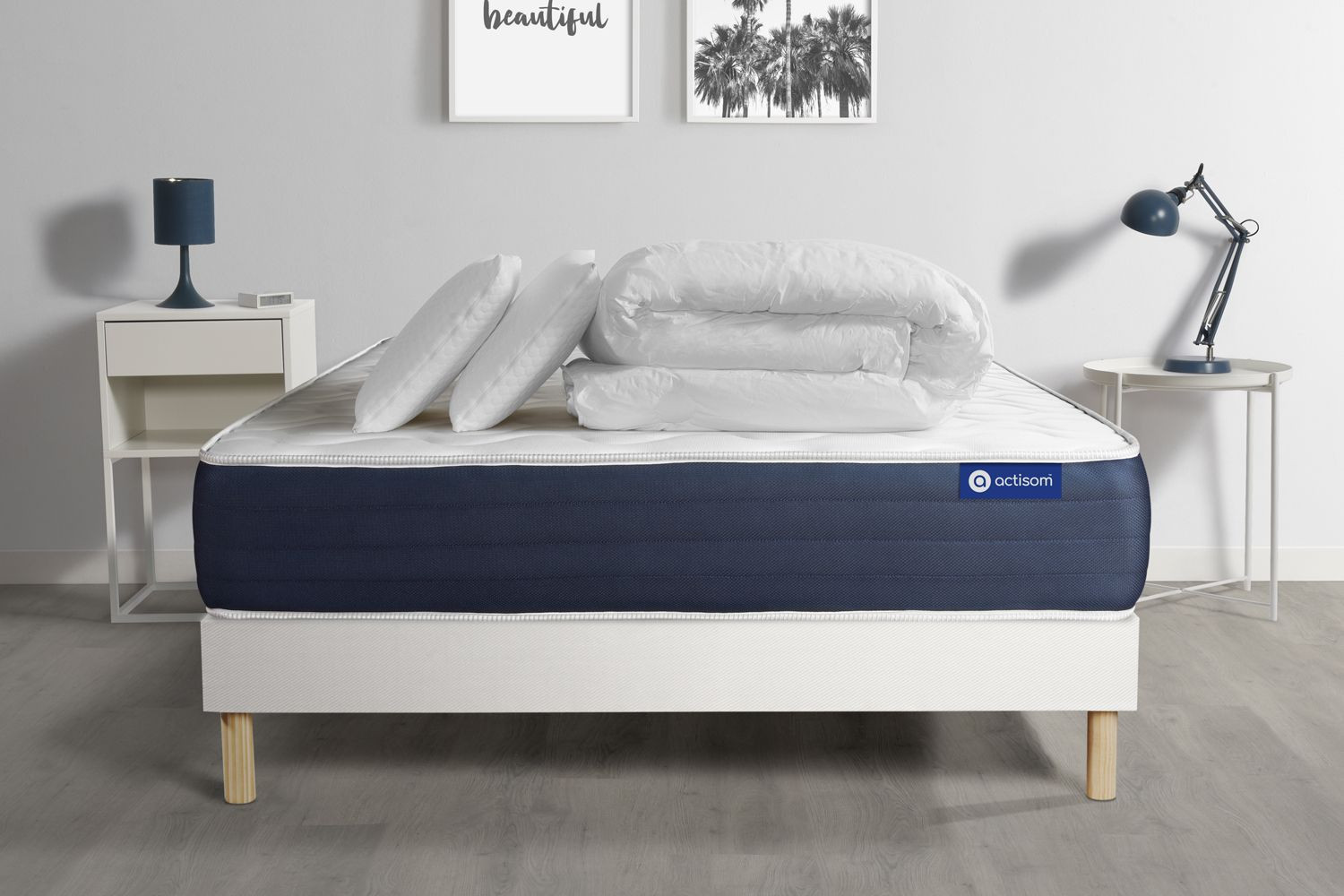 Pacote de cama completo - Colchão 140x200 cm + estrado de molas com ripas (em kit) + 2 almofadas + Edredão - Actilatex Sleep