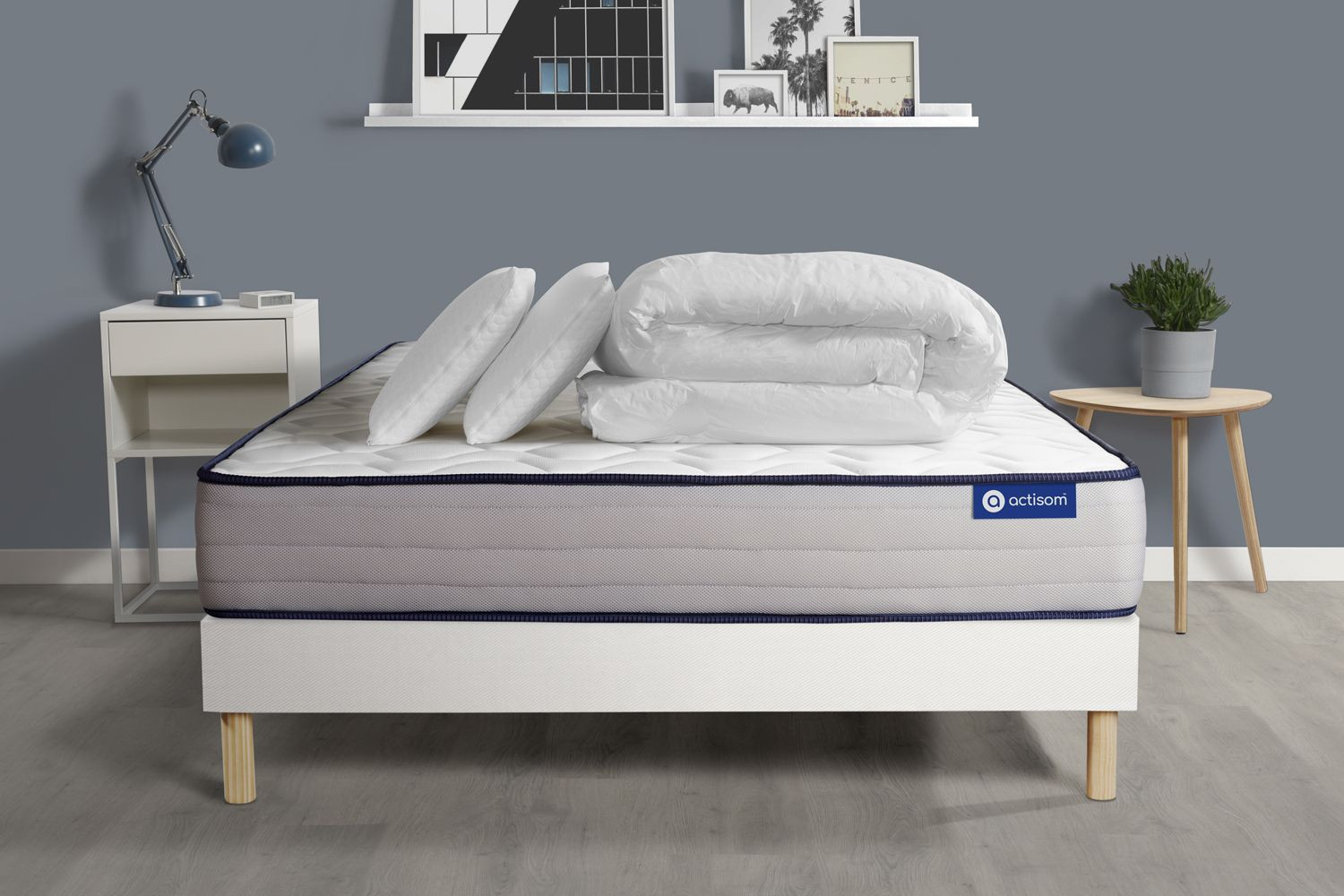 Conjunto completo de cama - Colchão 200x200 cm + estrado de molas com ripas (kit) + 2 almofadas + edredão - Actiflex Form
