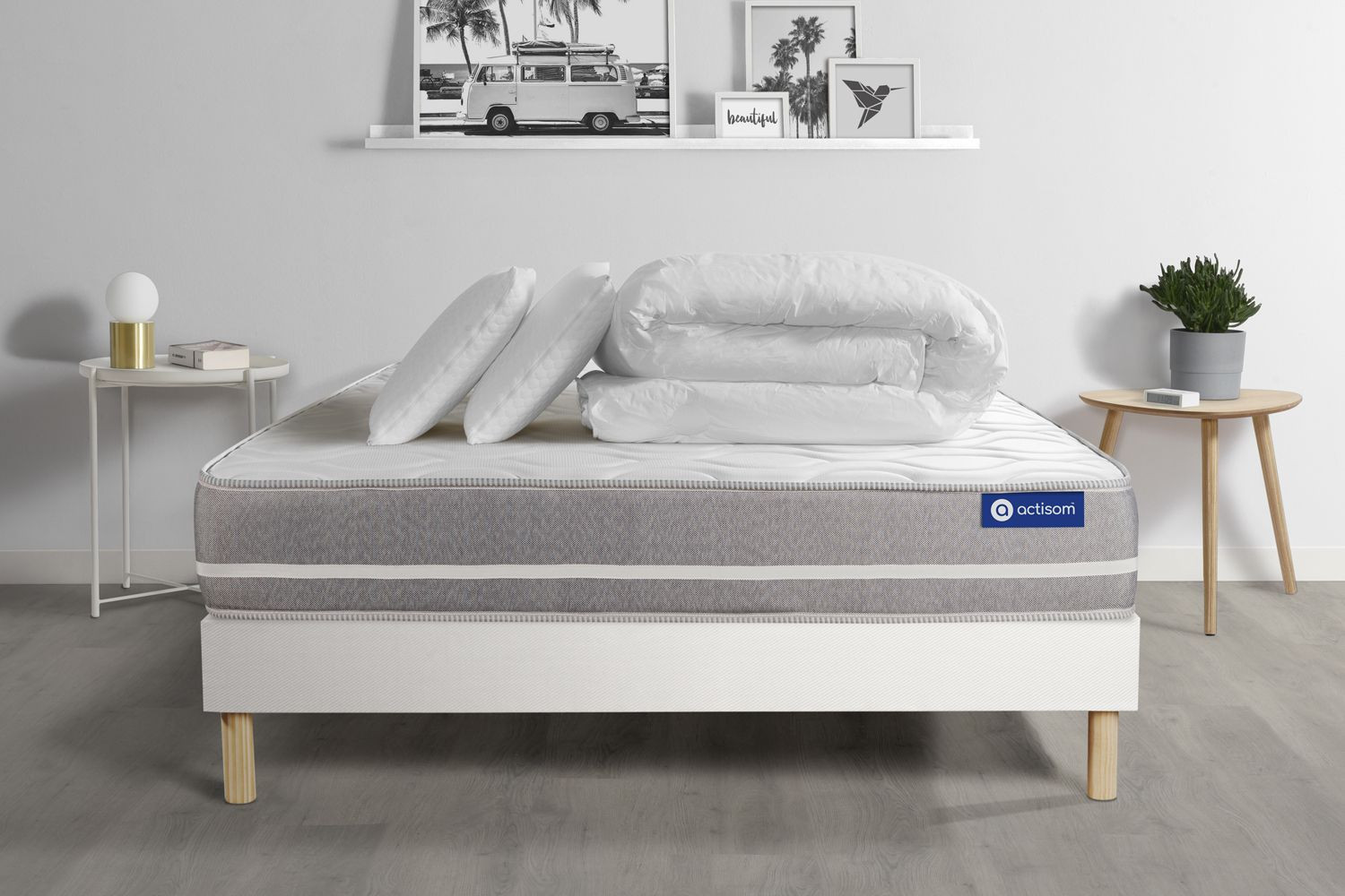 Pacote de cama completo - Colchão 140x200 cm + estrado de molas com ripas (kit) + 2 almofadas + Edredão - Actilatex Touch