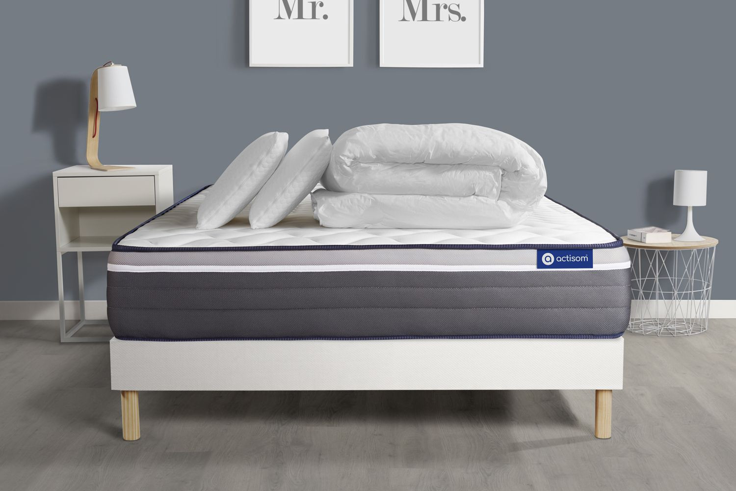 Conjunto completo de cama - Colchão 200x200 cm + estrado de molas com ripas (kit) + 2 almofadas + edredão - Actiflex Plus
