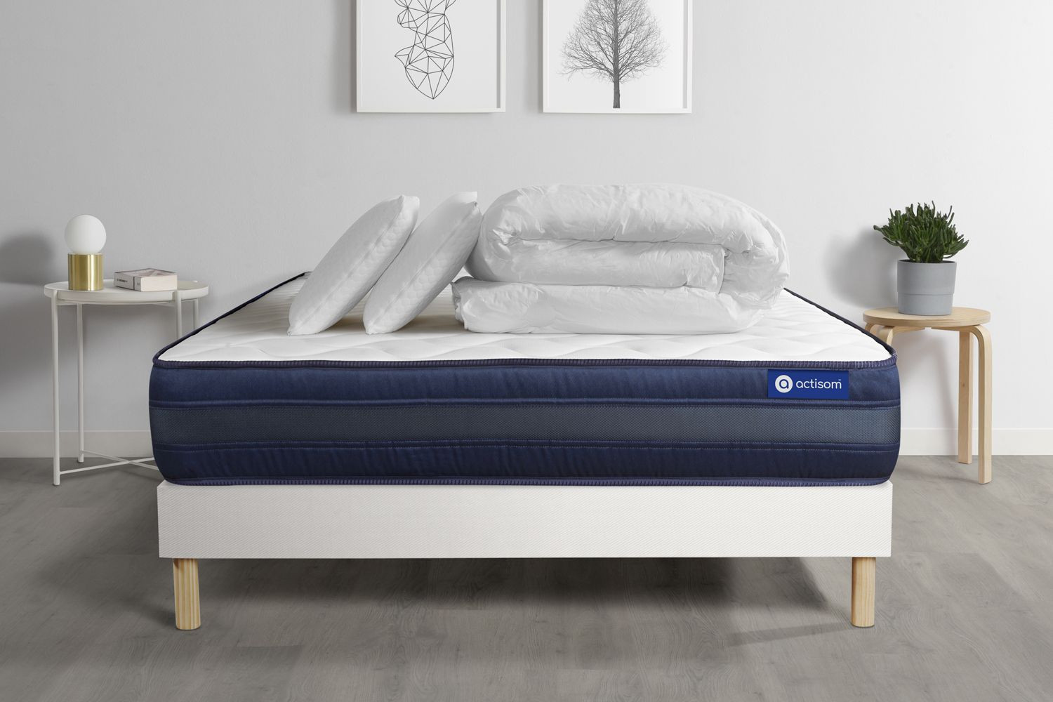 Pacote de cama completo - Colchão 180x200 cm + estrado de molas com ripas (kit) + 2 almofadas + Edredão - Actilatex Tech