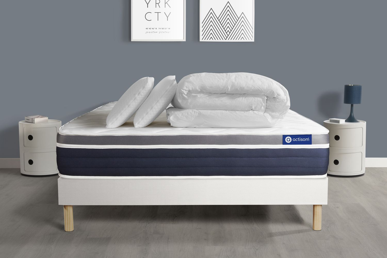 Conjunto completo de cama - Colchão 200x200 cm + estrado de molas com ripas (kit) + 2 almofadas + edredão - Actiflex Confort