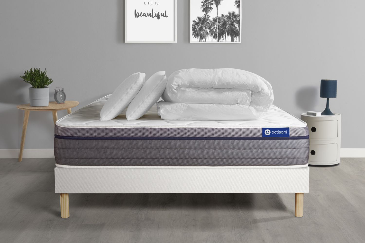 Conjunto completo de cama - Colchão 140x200 cm + estrado de molas com ripas (kit) + 2 almofadas + edredão - ActiMemo Zen