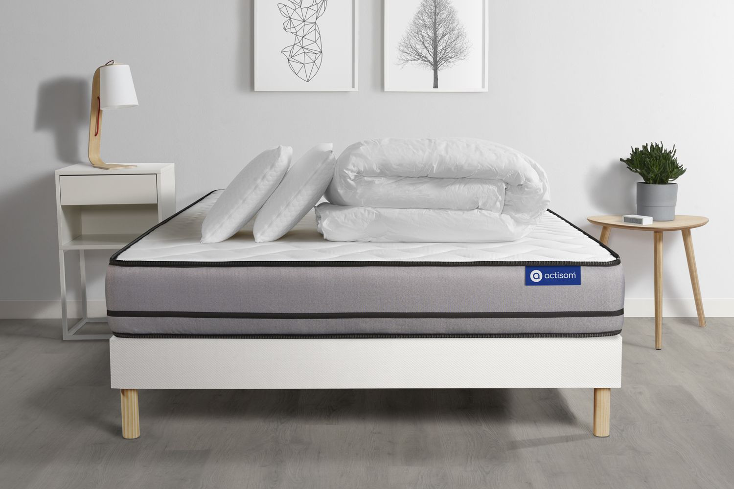 Pacote de cama completo - Colchão 140x190 cm + estrado de molas com ripas (kit) + 2 almofadas + Edredão - Actilatex Noite