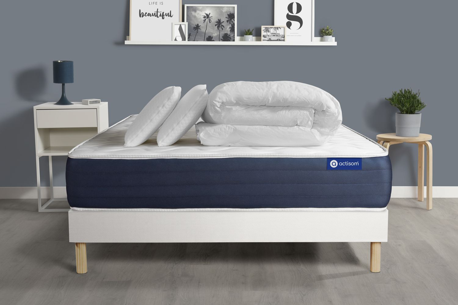 Conjunto completo de cama - Colchão 160x200 cm + estrado de molas com ripas (em kit) + 2 almofadas + edredão - Actiflex Sleep