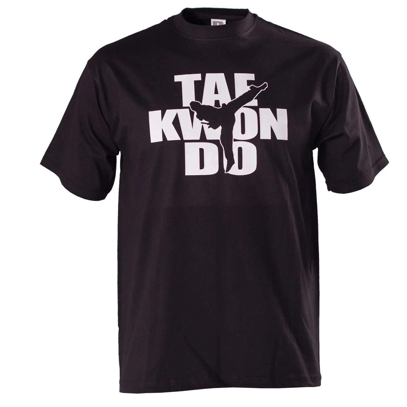 T-Shirt TaeKwondo T-shirt de corte recto com decote redondo e estampado grande TaeKwondo no peito. Material: 100% algodão Cor: preto Tamanho: XS - XXL