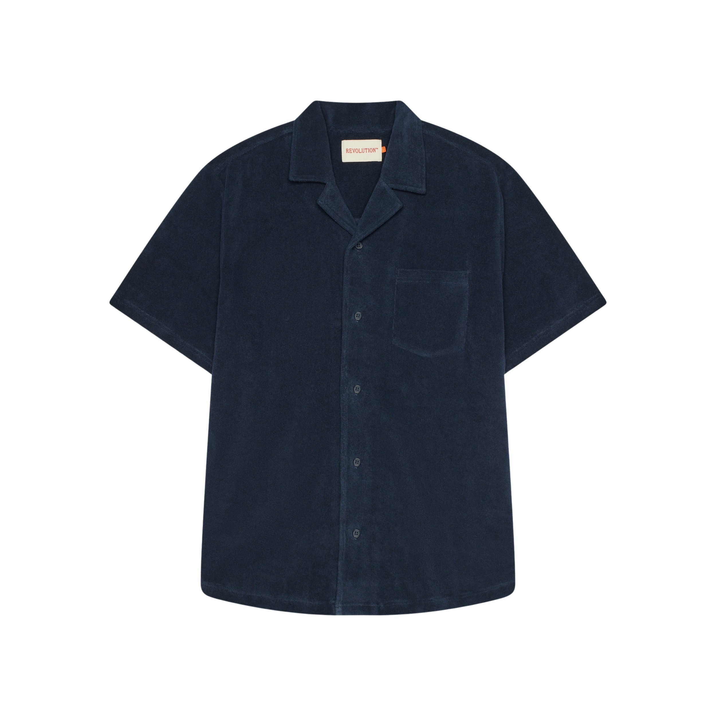 Camisa de manga curta com gola cubana em tecido elástico de felpo de algodão orgânico macio. - Camisa de felpo cubano - O modelo mede 189 cm e veste um tamanho L - 260 g/m² jersey de felpo Durabilidade - Algodão orgânico