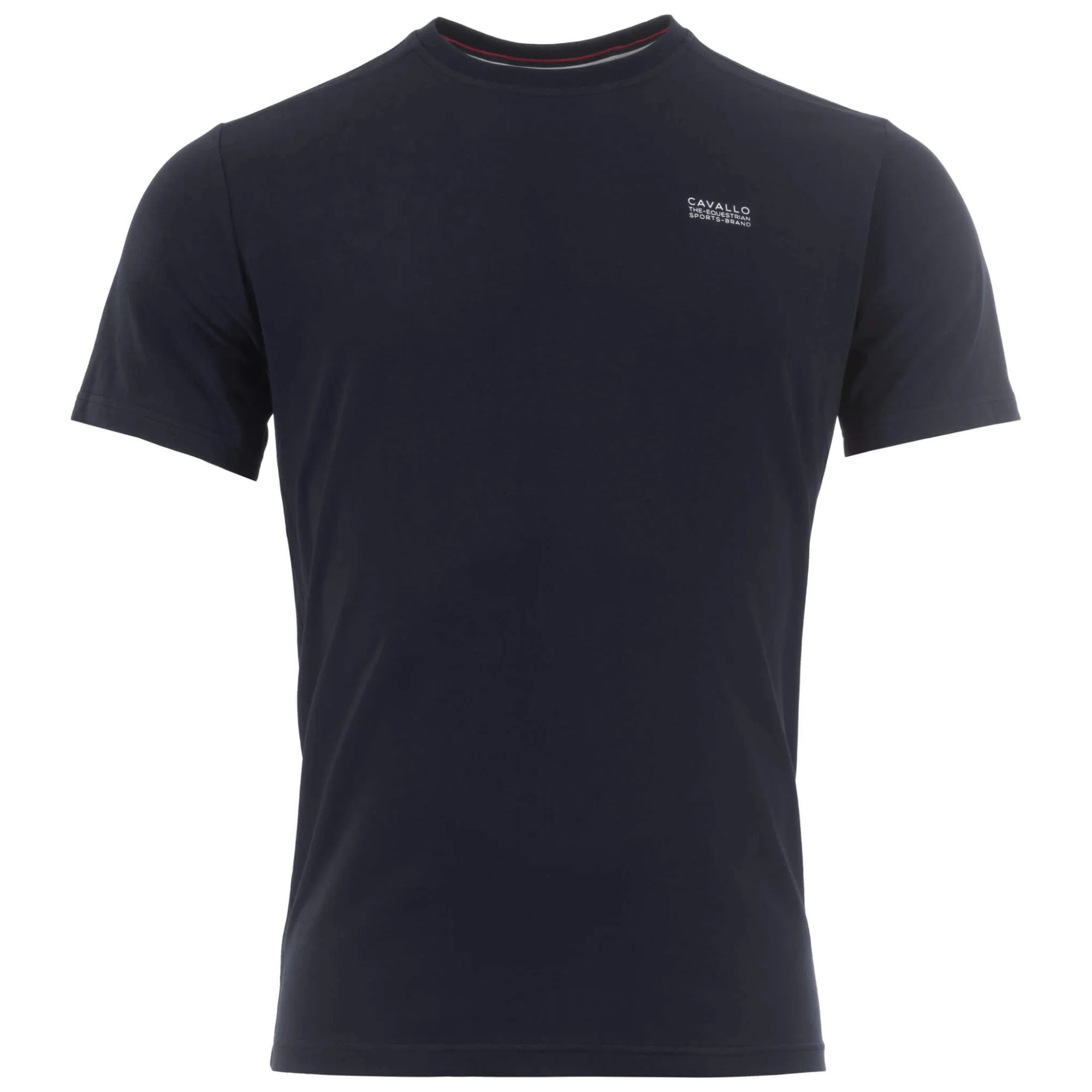 Camisa em algodão bi-elástico com decote redondo canelado. Cavallo estampado no peito esquerdo. Com rebite metálico Cavallo a meio do pescoço. Com encaixe à frente. 95% algodão, 5% elastano
