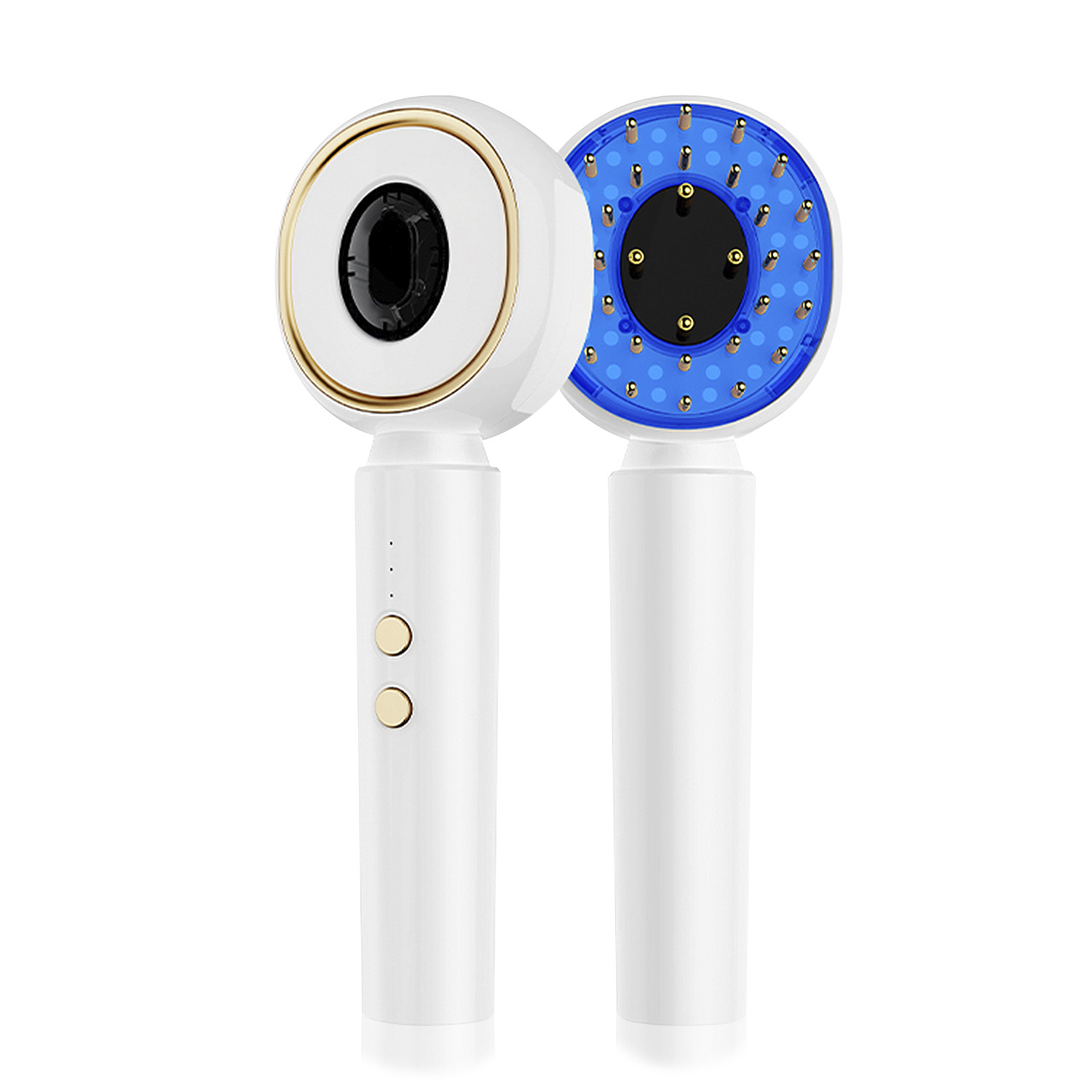 Pente com tratamento capilar por luz LED em 3 cores, massagem capilar, dispensador de líquidos.