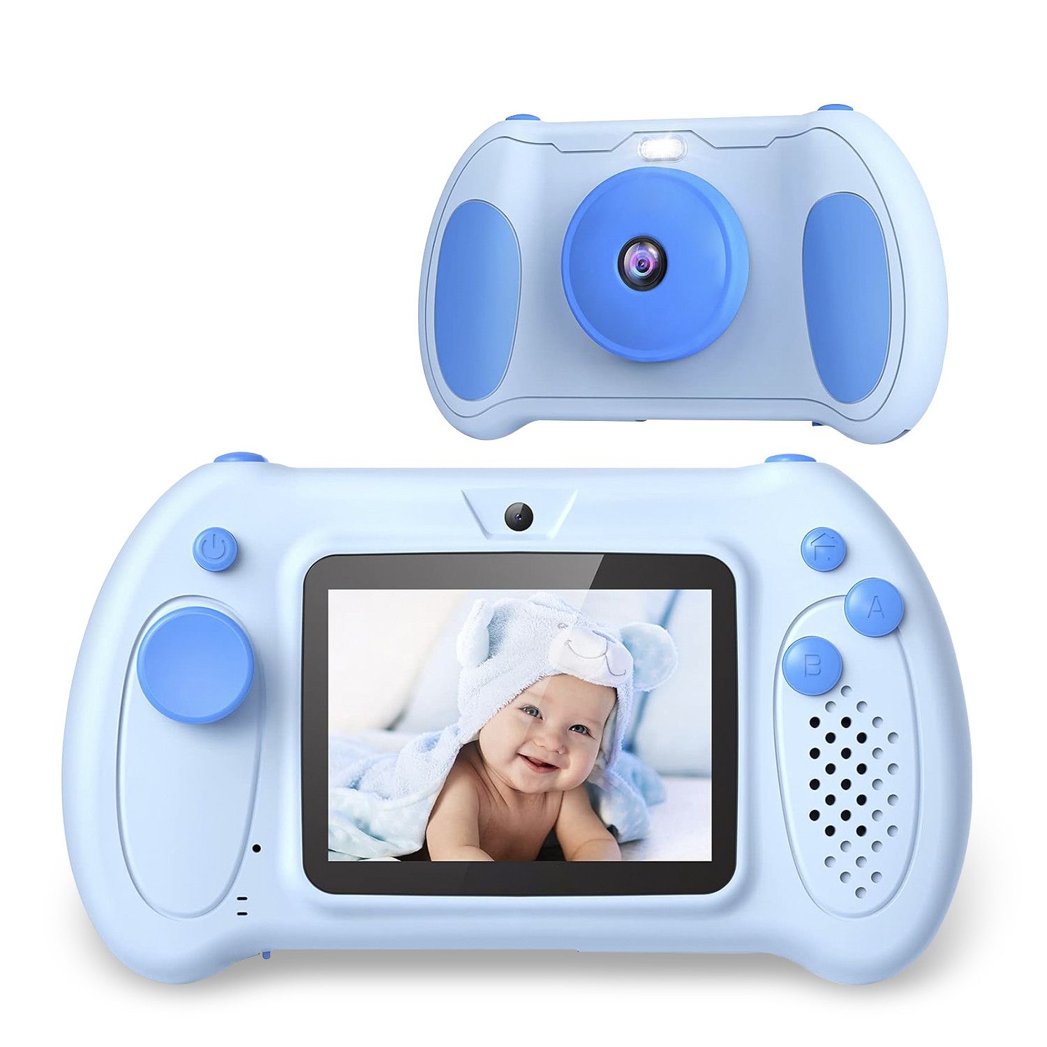 Câmera de fotos e vídeo infantil com jogos incorporados. Câmera dupla, 48mpx e vídeo Full HD. Tela de 2,4 polegadas.