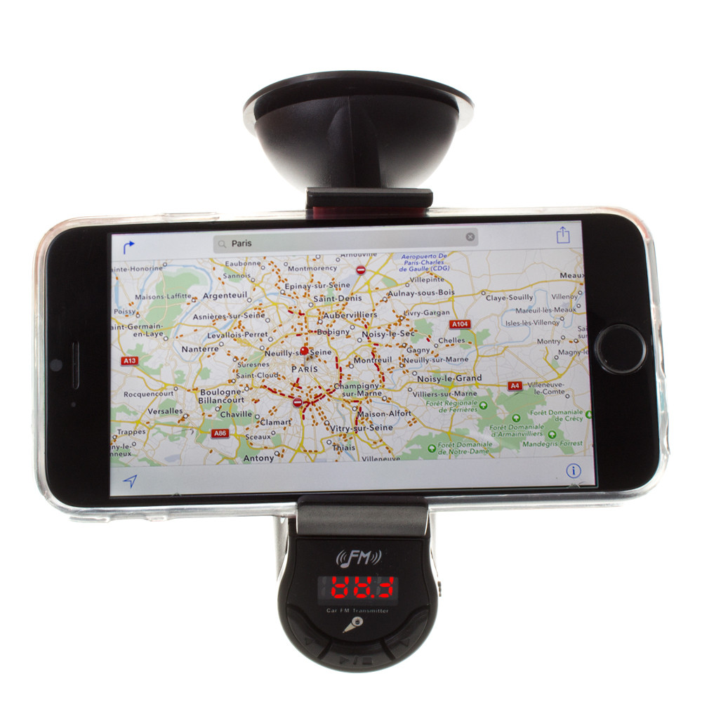 DAM Bluetooth mãos-livres FM + porta ventosa 360º para telemóvel FM09 16x7x4 Cm. Cor preta