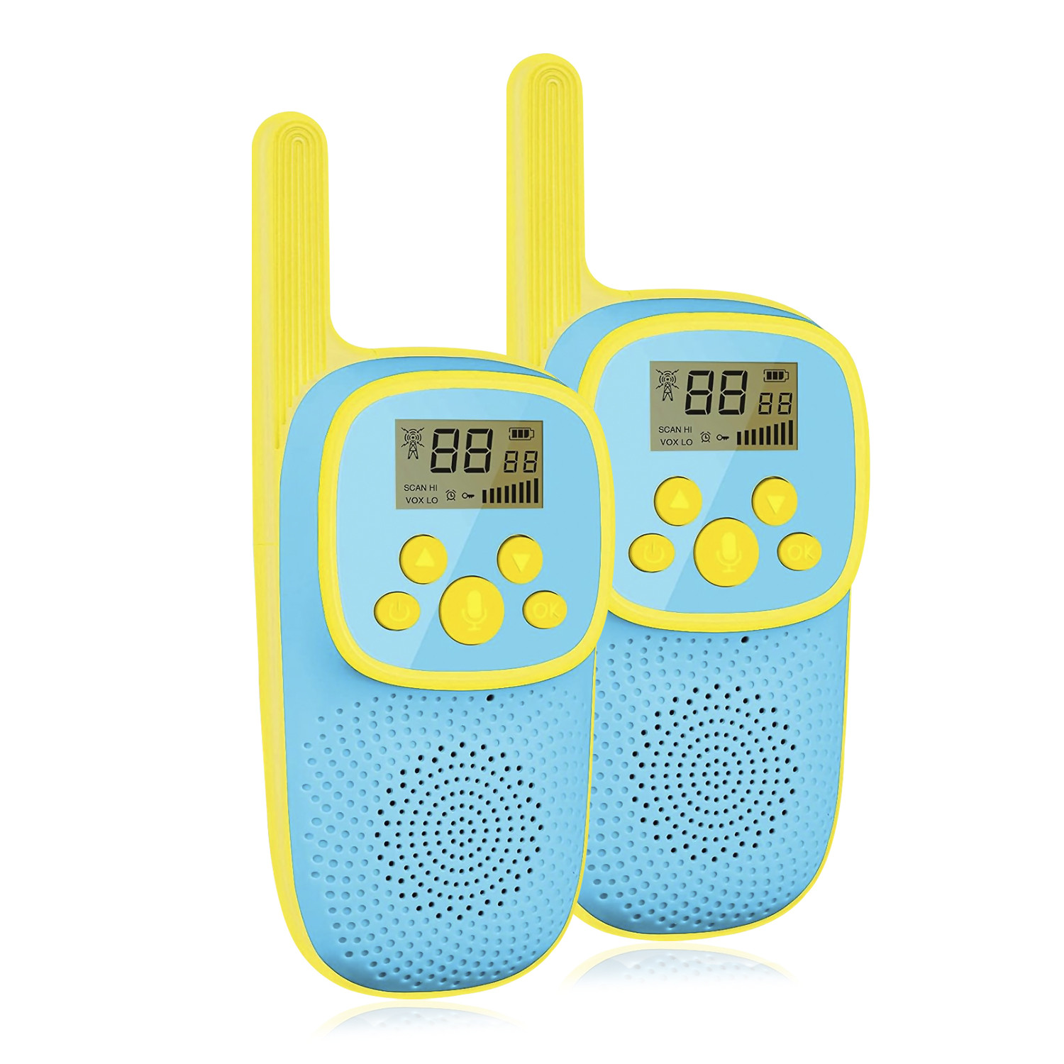 DAM Walkie Talkies infantis D21, 1-3 km, tela de 1,5 LCD, 99 códigos de grupo criptografados, luz LED. 2 unidades. Bateria recarregável. 5,5x3,5x13,5 Cm. Cor: Azul Walkie Talkies infantis D21: • Tela de 1,5 polegadas, distância de intercomunicação de 1 a 3 quilômetros. • Corpo compacto e robusto; Material durável e ecológico. Pequeno e leve, muito fácil de usar. Lanterna embutida. • Longo alcance com sinal estável; Transmissor poderoso e alta sensibilidade de recepção melhoram a estabilidade do sinal; Os pais podem monitorar a situação da criança em tempo real para evitar que ela se desvie; perfeito para atividades ao ar livre • Volume ajustável e qualidade de som nítida; Ajuda você a obter um som nítido mesmo se estiver em um local lotado. • 99 códigos de grupo criptografados, 10 toques. Qualidade de som nítida e suave para proteger os ouvidos das crianças. • Bateria de lítio recarregável incorporada. Bateria: lítio, integrada Duração em uso contínuo: até 1,5 horas Distância efetiva: 1 - 3km Canais: Europa 8 / EUA 2 / China 20 Distorção de recepção: ≤3% Sensibilidade: ≤-121dBm Amplitude de saída de áudio: ≥1,2V Corrente máxima de espera: ≤65mA Corrente mínima de desligamento: ≤80uA DC-5V/1A Não recomendado para crianças menores de 3 anos. Use sob supervisão de um adulto. Risco de asfixia: Contém peças pequenas que podem ser engolidas e causar asfixia. ABS, liga metálica.