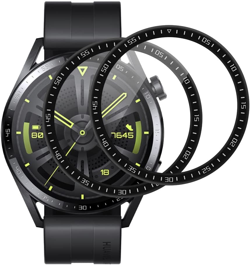 Compatível com o relógio Huawei Watch GT 3 de 46 mm. Embalagem contendo 2 copos transparentes temperados macios com rebordo preto e toalhetes de limpeza. Protetor de ecrã de relógio
