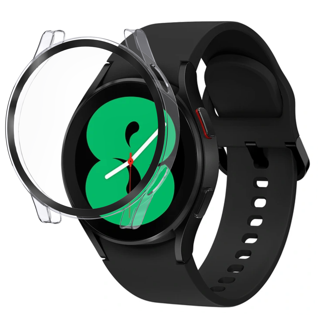 Compatível com Samsung Galaxy Watch 4 40 mm. Caixa de 1 capa rígida transparente com protetor de ecrã de vidro temperado integrado e toalhetes de limpeza