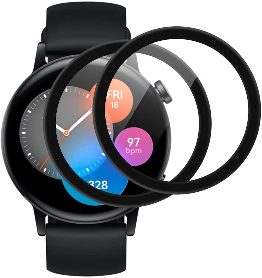 Compatível com o relógio Huawei Watch GT 3 de 42 mm. Embalagem contendo 2 copos transparentes temperados macios com rebordo preto e toalhetes de limpeza. Protetor de ecrã de relógio