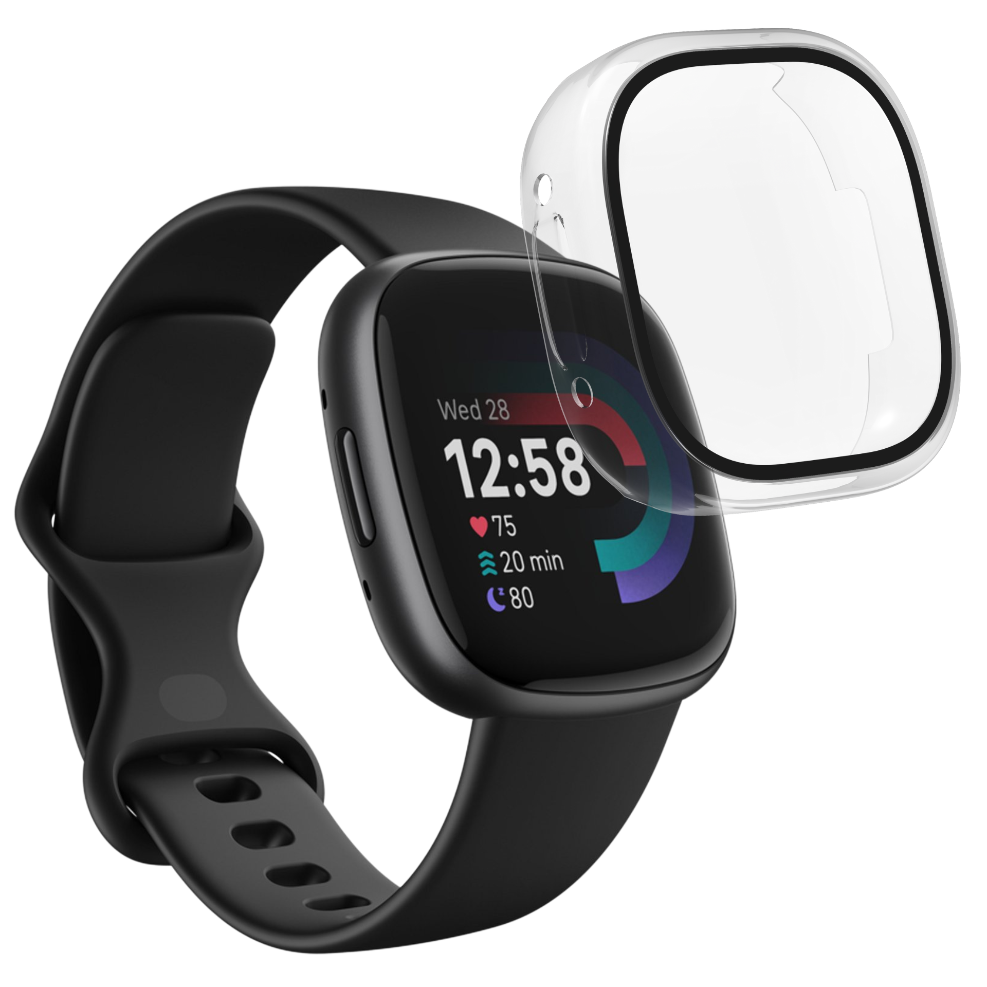 Compatível com o relógio Fitbit VERSA 4 / Fitbit SENSE 2. Caixa de 1 capa rígida transparente com protetor de ecrã de vidro temperado integrado e toalhetes de limpeza