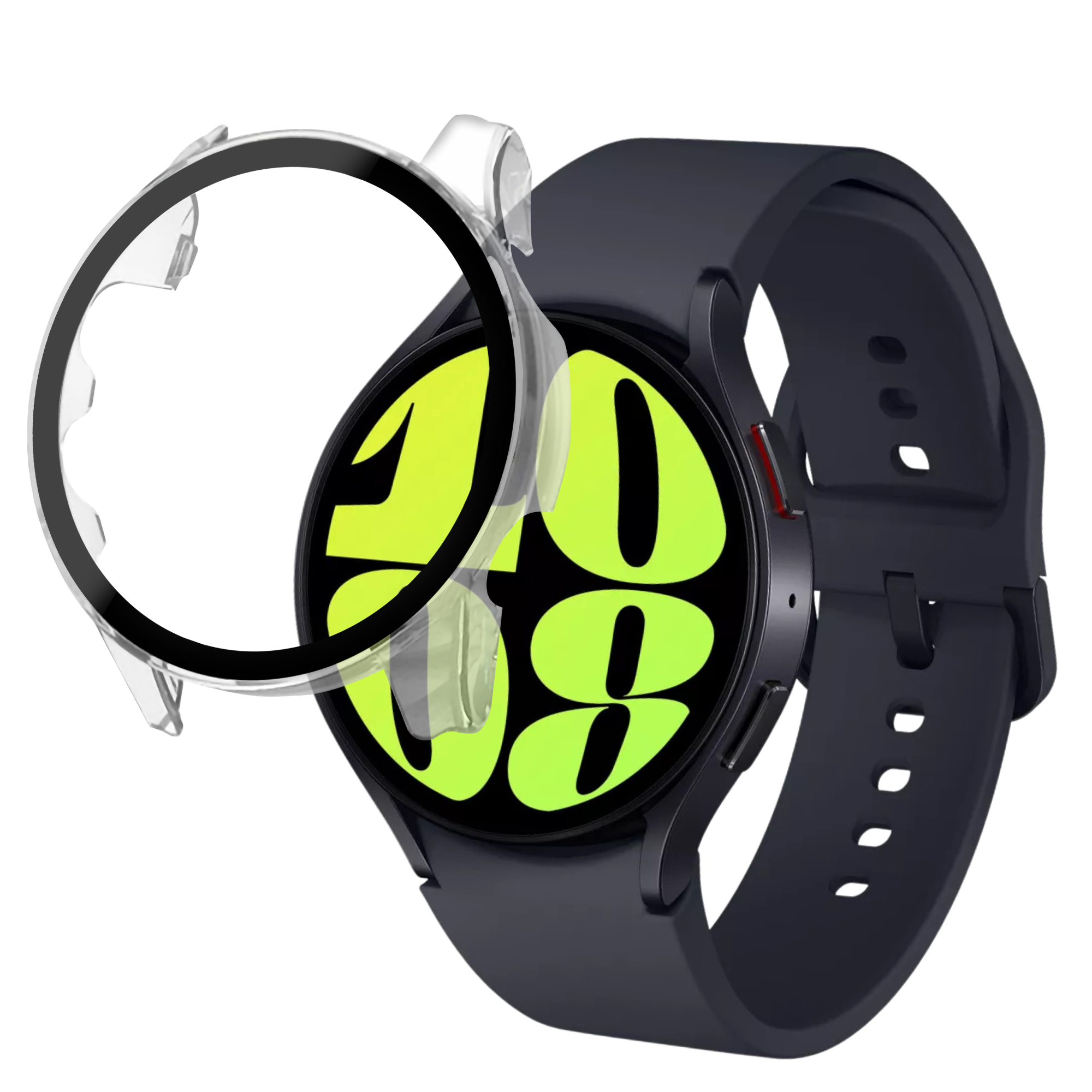Compatível com Samsung Galaxy Watch 6 44mm. Caixa de 1 capa rígida transparente com protetor de ecrã de vidro temperado integrado e toalhetes de limpeza