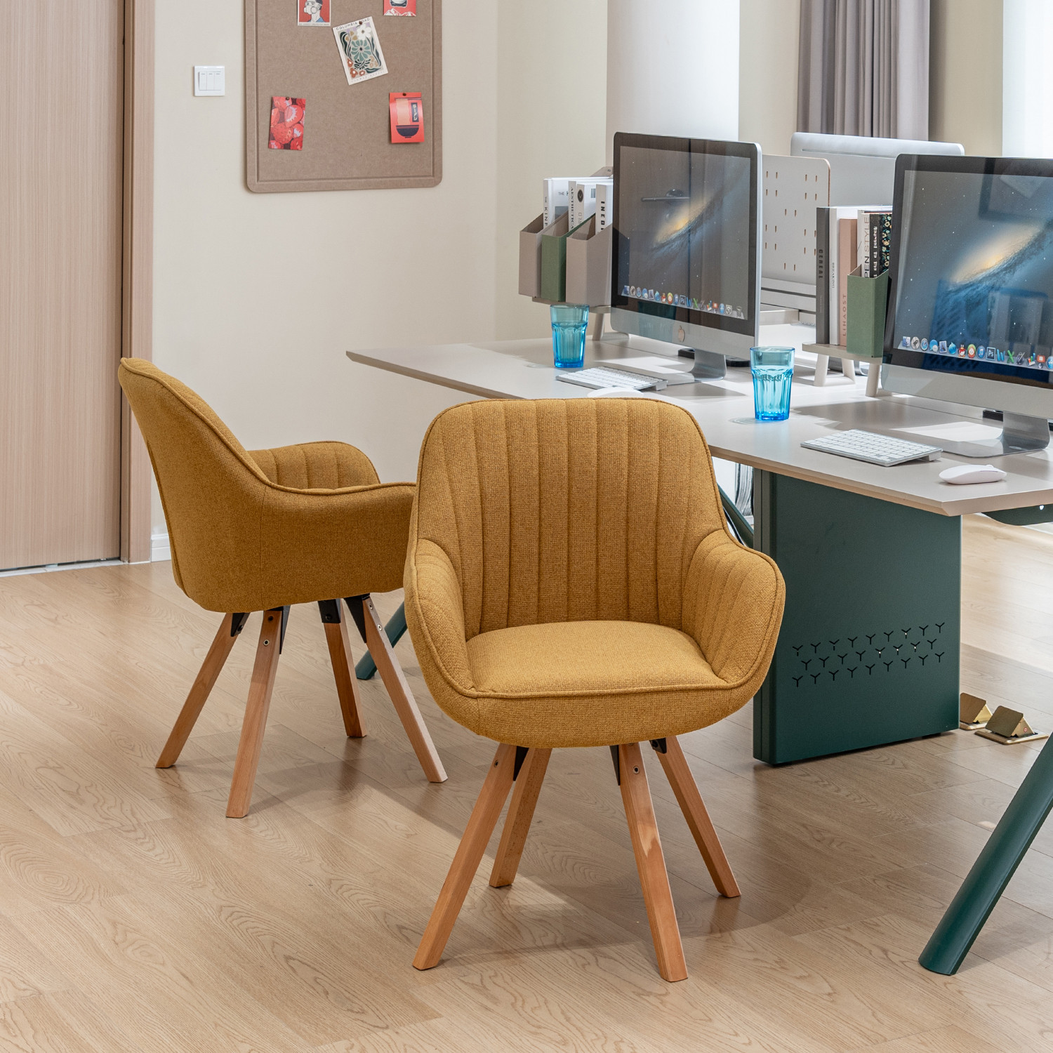 Conjunto de 2 cadeiras de jantar escandinavas com assento giratório e braços estofados em tecido e pernas em madeira maciça, Amarela