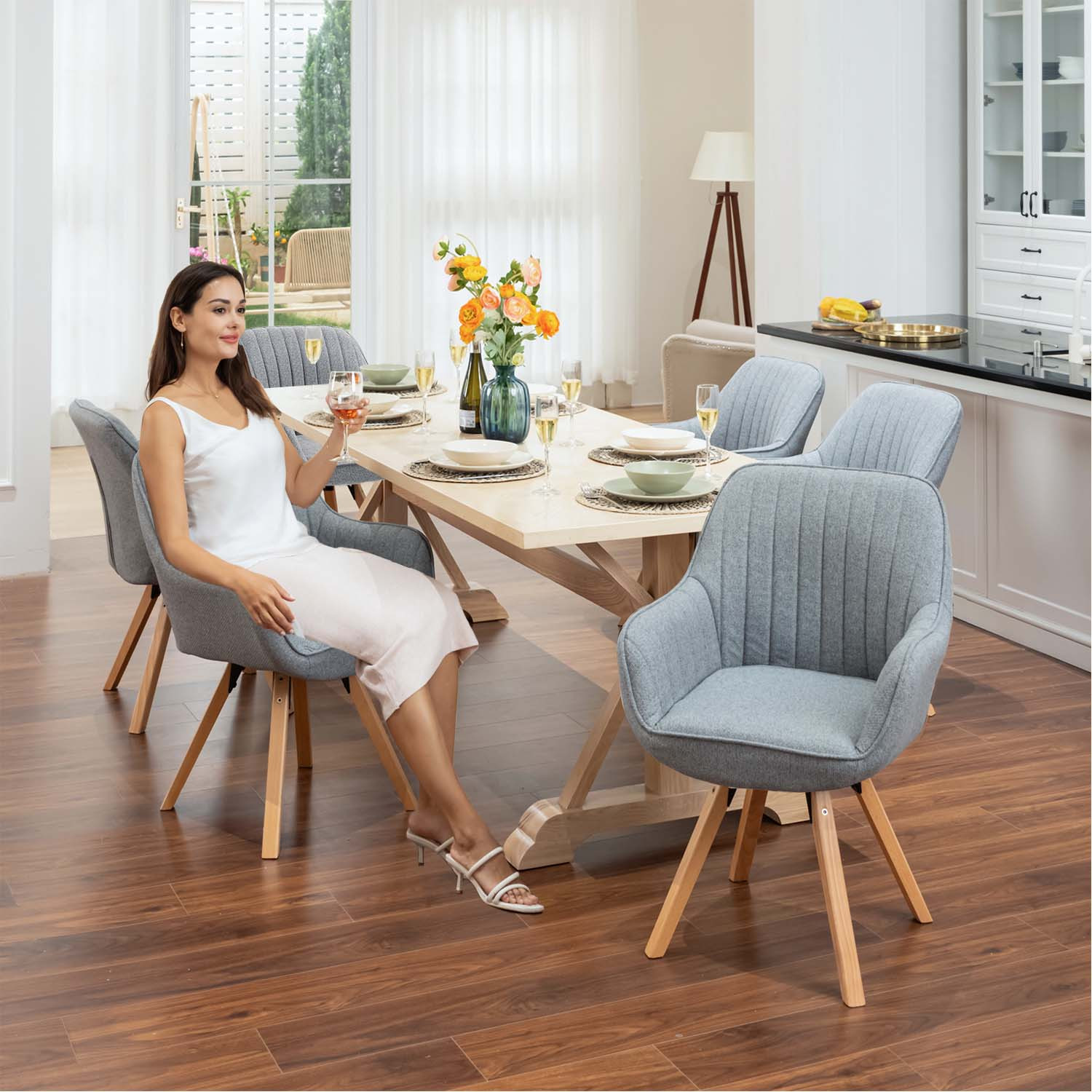 Conjunto de 6 cadeiras de jantar escandinavas com assento giratório e braços estofados em tecido e pernas em madeira maciça, Cinza