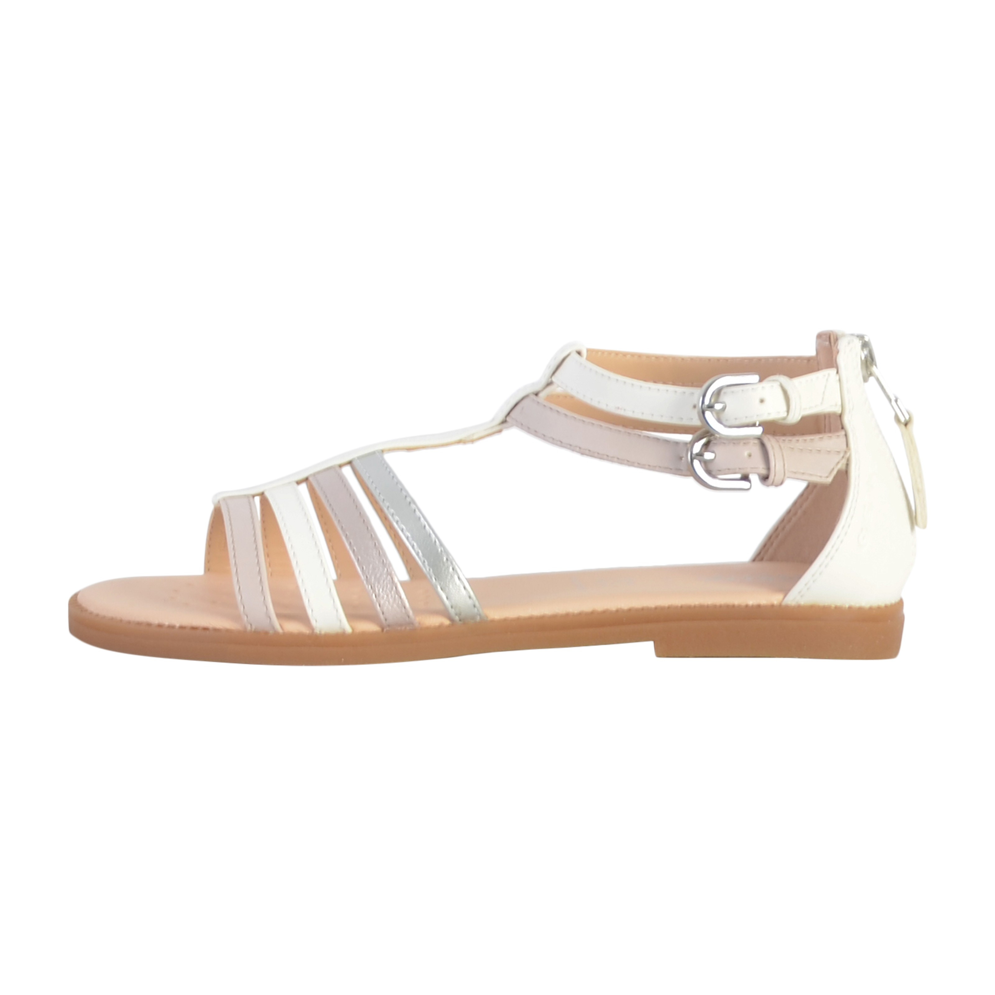 Modelo J SANDAL KARLY GIRL da marca Geox Branco Forro de Pele. Exterior de Sintético. Tipo de construção: Preso. Feito em Myanmar.