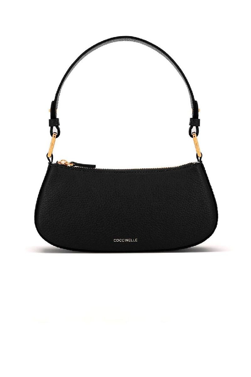Bolsa de ombro em couro granulado. Alça de mão e alça de ombro. Logotipo metálico na frente. Fechamento em zíper. Cor: preto e dourado Material: 100% couro Material do forro: algodão Dimensões: 23,5 x 11,5 x 4 cm