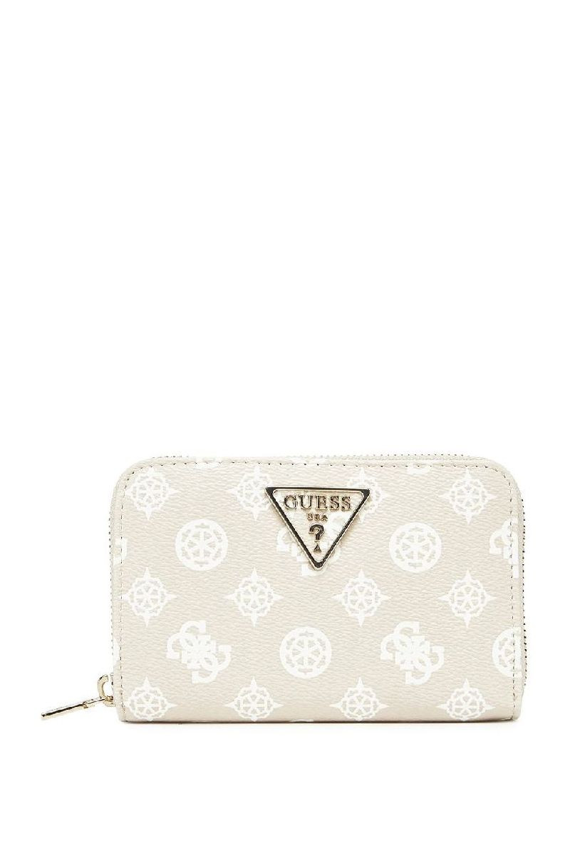 Carteira moderna com zíper, com estampa clássica de monograma e o icônico logotipo triangular da Guess.
